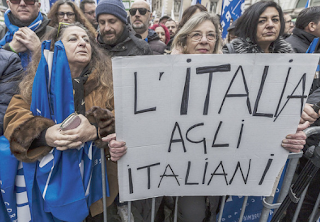 Matteo Salvini insiste sur la « menace » que représente « l’islamisation hors de contrôle » et promet « l’abolition » de la protection subsidiaire. « Nous devons décider si notre ethnie, notre race blanche, notre société doivent continuer à exister ou doivent disparaître »